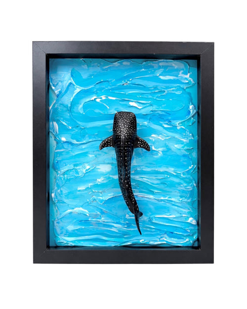 Just Keep Swimming! Every day I remind myself to "just keep swimming" and drew my inspiration from this reminder. Each limited edition shark art comes framed in an 8" x 10" black shadow box frame suitable for hanging or placed on a shelf. Each original piece is hand signed by me, The Gooch! Each mixed media artwork may vary from the one pictured as each piece is original. Limited to 3.
